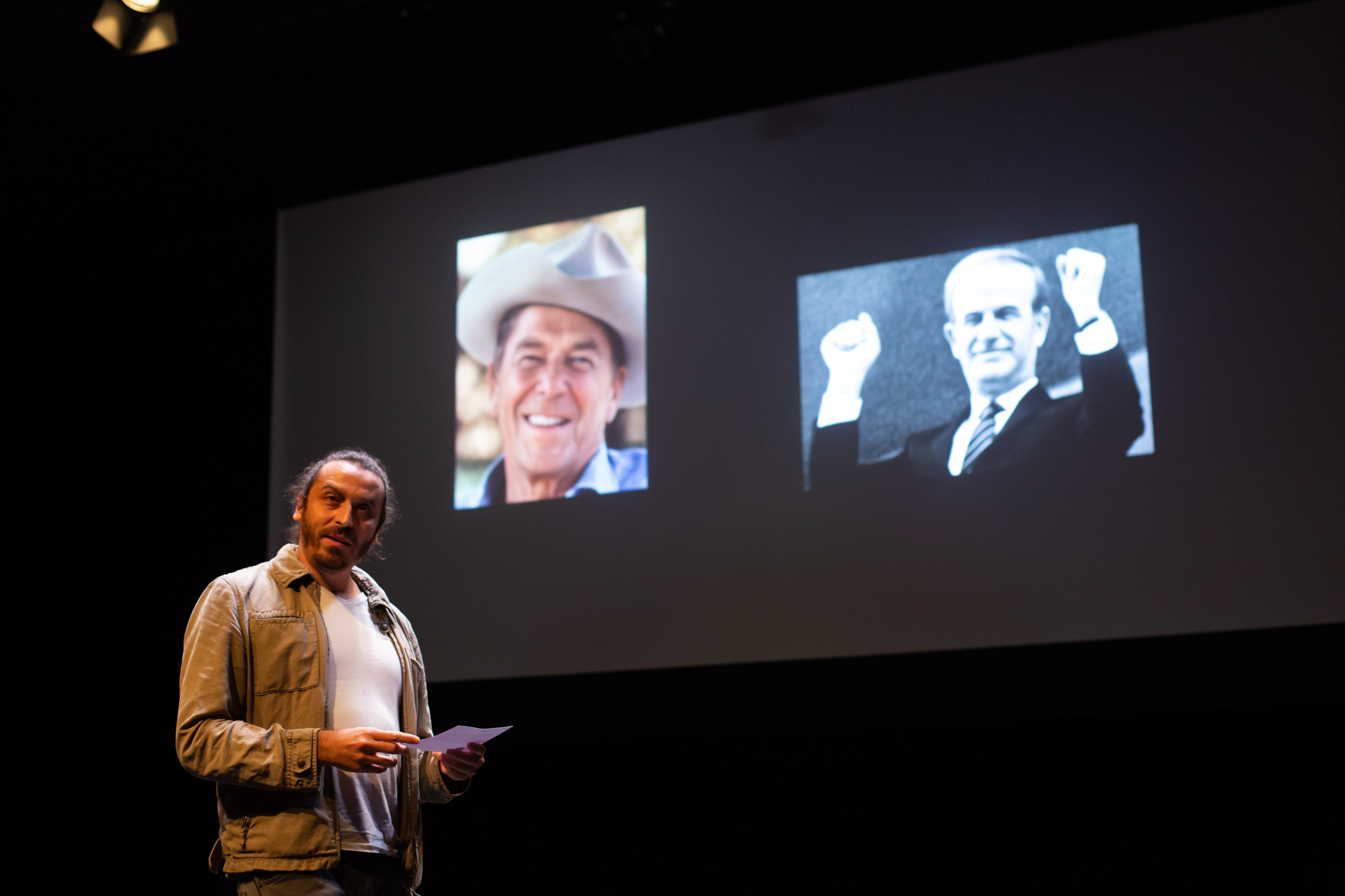 «Αν ρωτήσετε έναν μαθηματικό, θα σας πει ότι ο κόσμος είναι φτιαγμένος από αριθμούς. Αν ρωτήσετε έναν καλλιτέχνη, θα σας πει ότι ο κόσμος είναι φτιαγμένος από ιδέες, συναισθήματα. Αν ρωτήσετε εμένα, θα σας πω ότι κόσμος είναι μία μεγάλη αγροτική εκμετάλλευση γεμάτη καλούς και κακούς, που παλεύουν για επιβίωση και διαφορετικότητα» έλεγε μεταξύ άλλων ο Λιβανέζος εικαστικός καλλιτέχνης Ζίαντ ‘Ανταρ στην ευφάνταση αγροτική σάτιρα με τη μορφή περφόρμανς-ομιλίας «H Διπλωματία της Ουροδόχου Κύστης» («Bladder Diplomacy») τον Οκτώβριο του 2021 στη Μικρή Σκηνή της Στέγης.